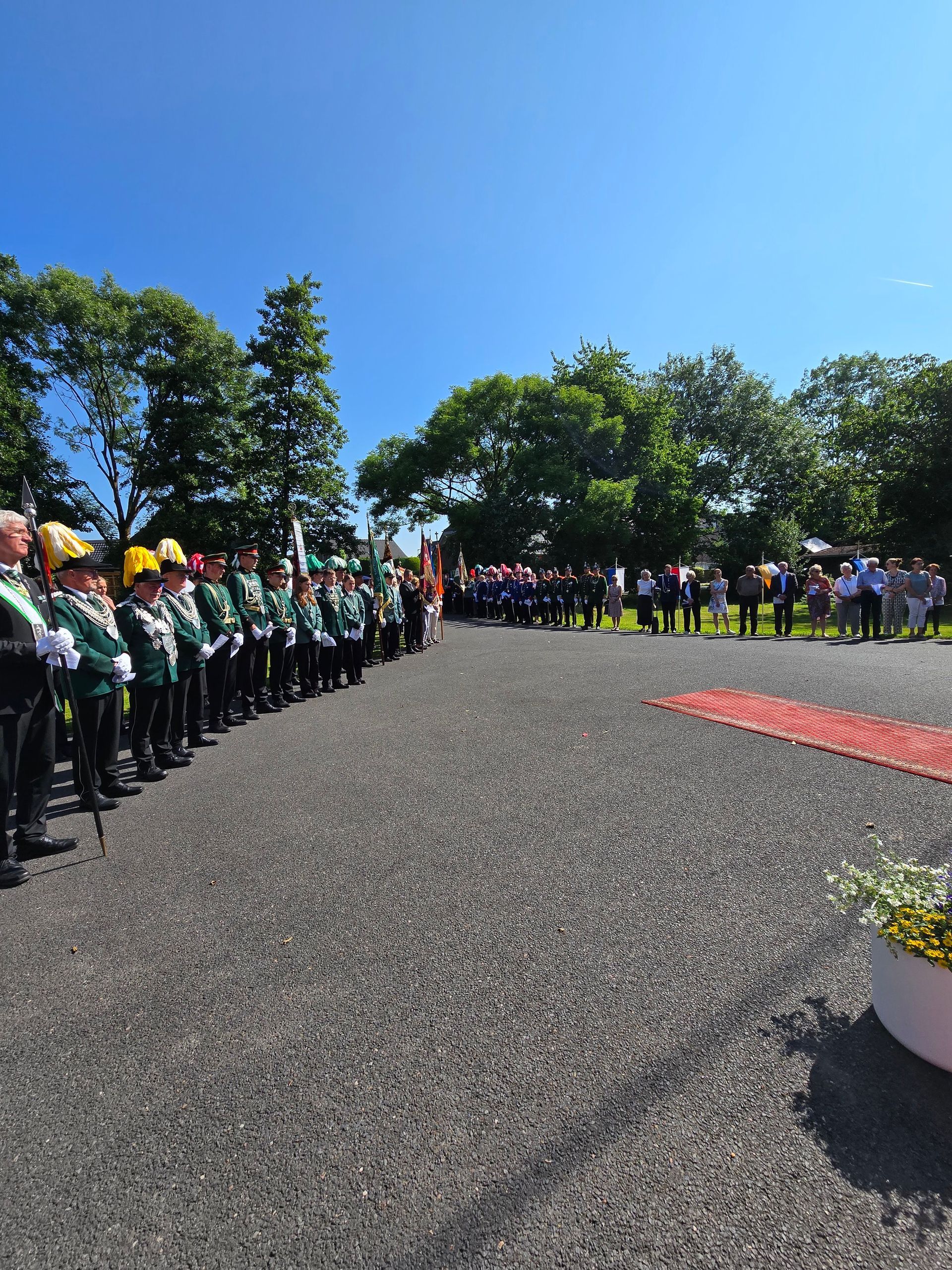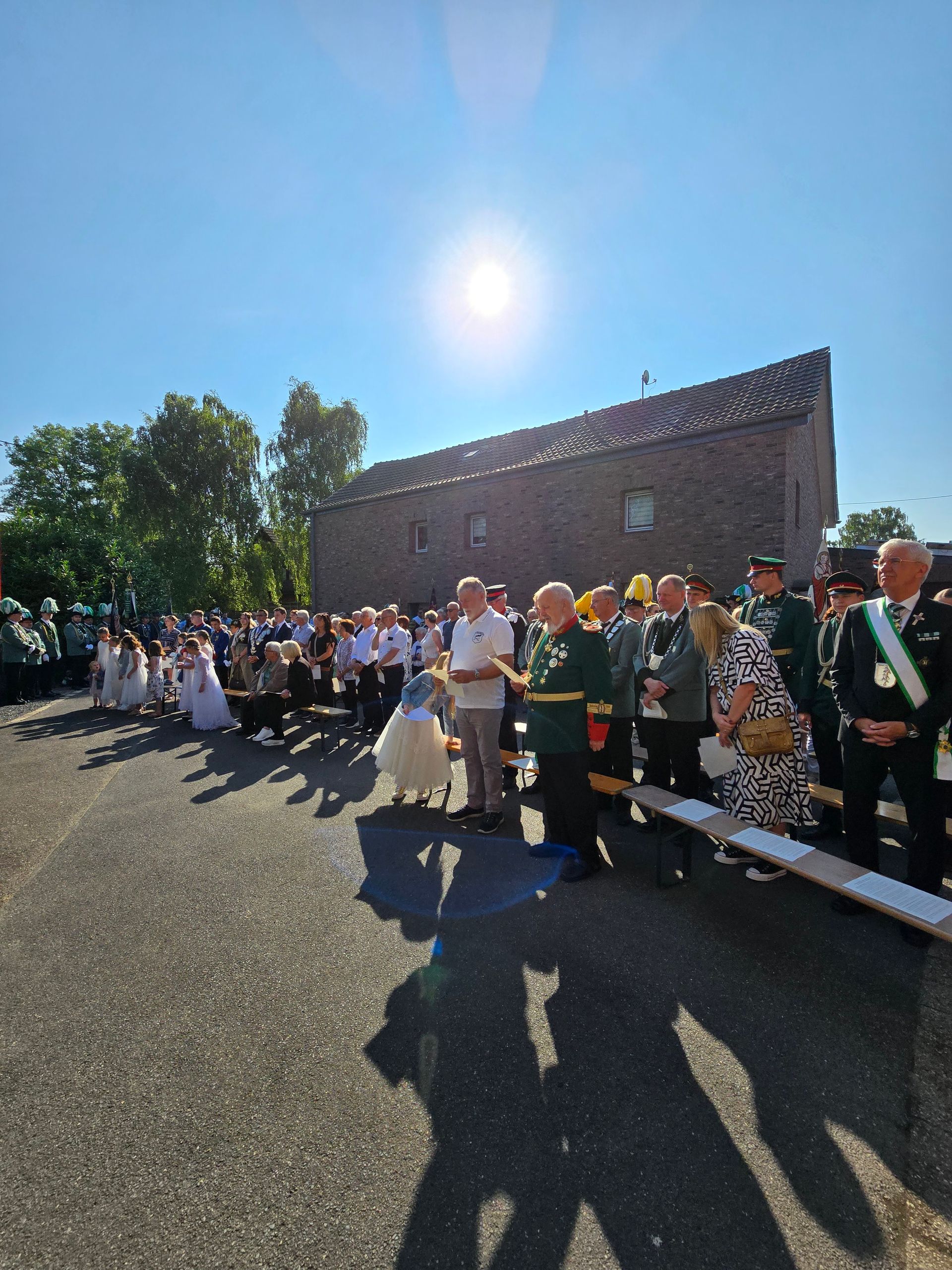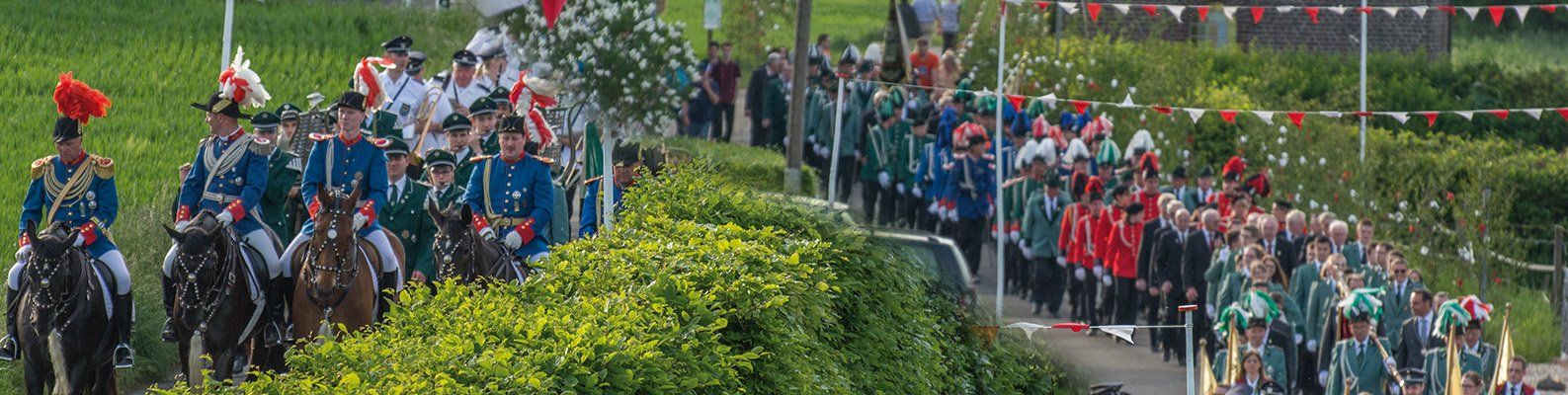 Ende Mai erlebten vier unserer Schützenbrüder dann eine ganz besondere Wallfahrt und reisten gemeinsam mit tausenden Schützen aus ganz Europa im Rahmen des Heiligen Jahres zum Vatikan. Die Schützenfestsaison hatte nun so richtig begonnen und unsere Bruderschaft besuchte unsere Freunde in Rickelrath und Beeck. Darauf folgte das Highlight des Jahres, unser Prunk- und Heimatfest. Den ausführlichen Bericht zu diesem wieder einmal tollen Fest finden Sie auf dieser Seite. Den inoffiziellen Abschluss des Schützenfestes machte traditionell die Prozession an Fronleichnam, die bei bestem Wetter durch die Straßen unseres Dorfes ziehen konnte.
