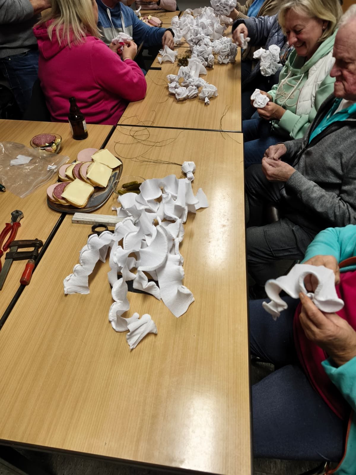 Die engagierten Bruderschaftler und Bruderschaftlerinnen schmücken das Festzelt.